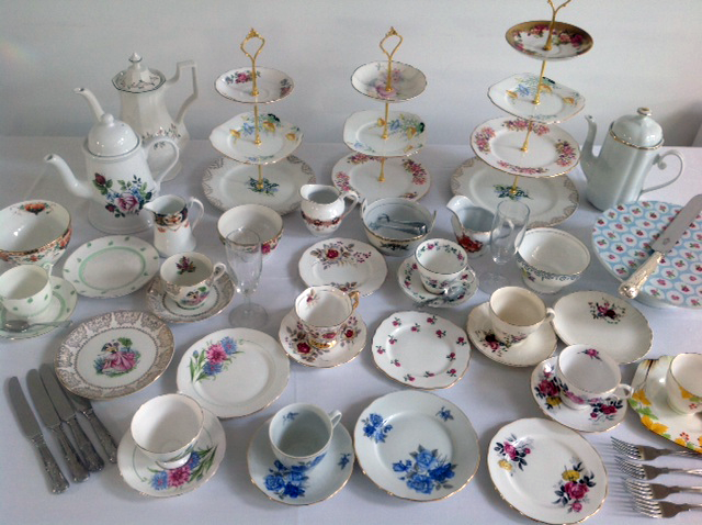 View our gallery of items for catering equipment hire in Kent & London – crockery (including vintage china), cutlery, glassware etc.
